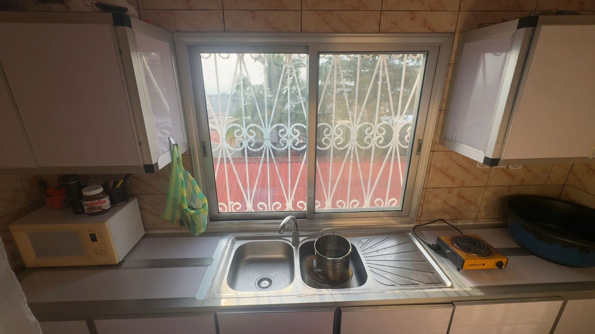 vous avez un grand appartement de 3 pièces dans une villa duplex. la grande chambre composée d'une salle de bain avec baignoire à l'intérieur. aussi avec clim et l'eau chaude . les deux autres chambres composés d'un toilette douche wc au milieu entre les de chambres, avec un grand salon et salle à manger, voir les photos . avec un téléviseur écran plat câble . tous les chambres y compris le salon vous avez des terrasse à l'extérieur. aussi un grand clôture avec l'espace pour faire le barbecue .