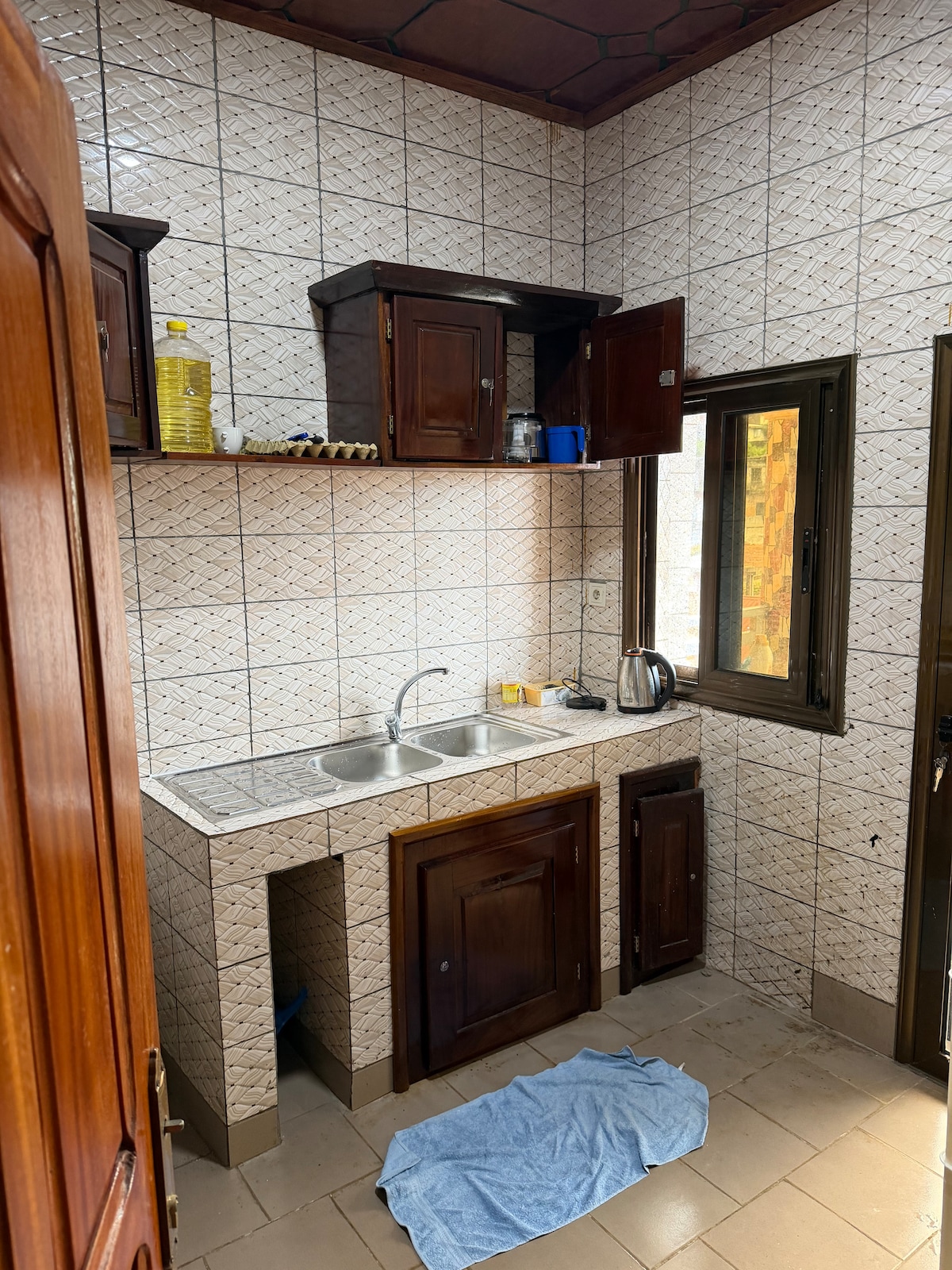 Détendez-vous dans ce logement calme et élégant à lansanyah-barage.,Située 5 minutes a pied au bord de la grande route principale, d'un centre commerciale, d'un marché, une pompe essence total etc.