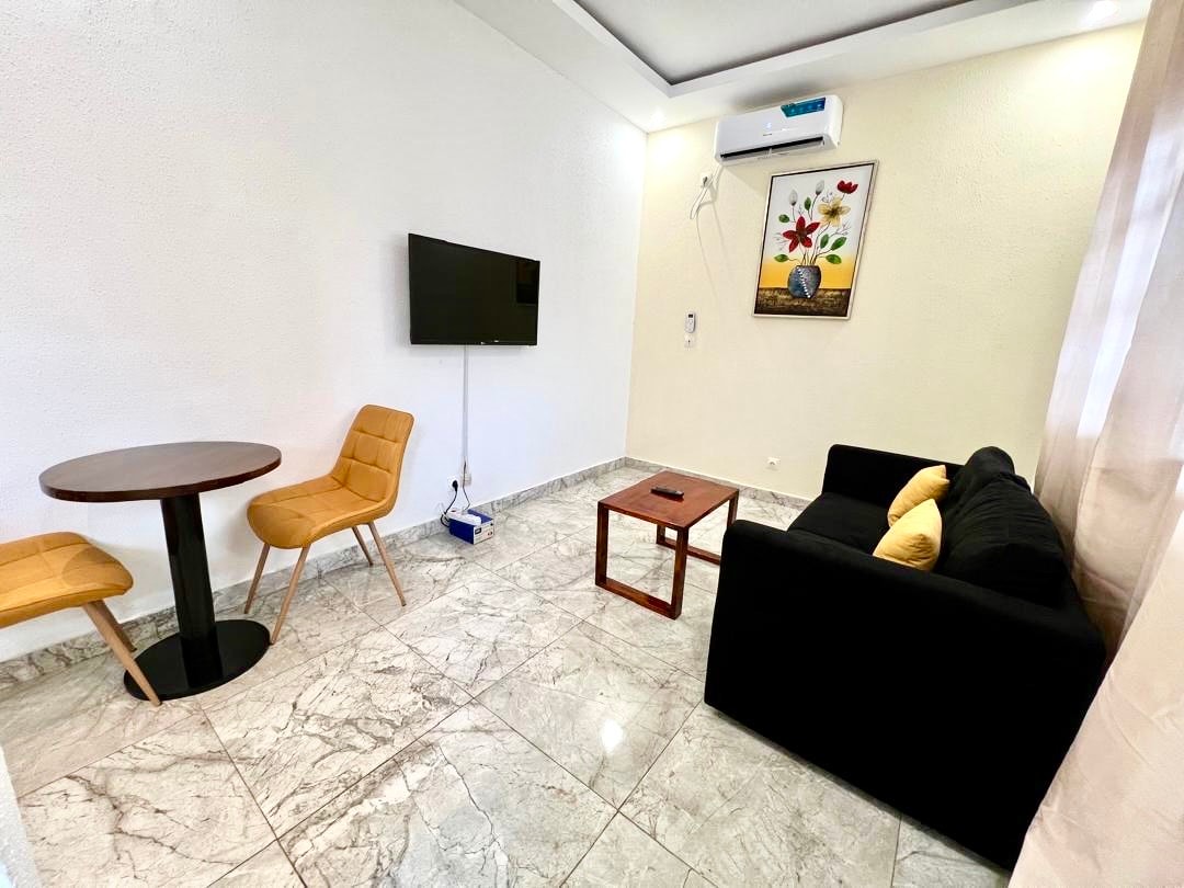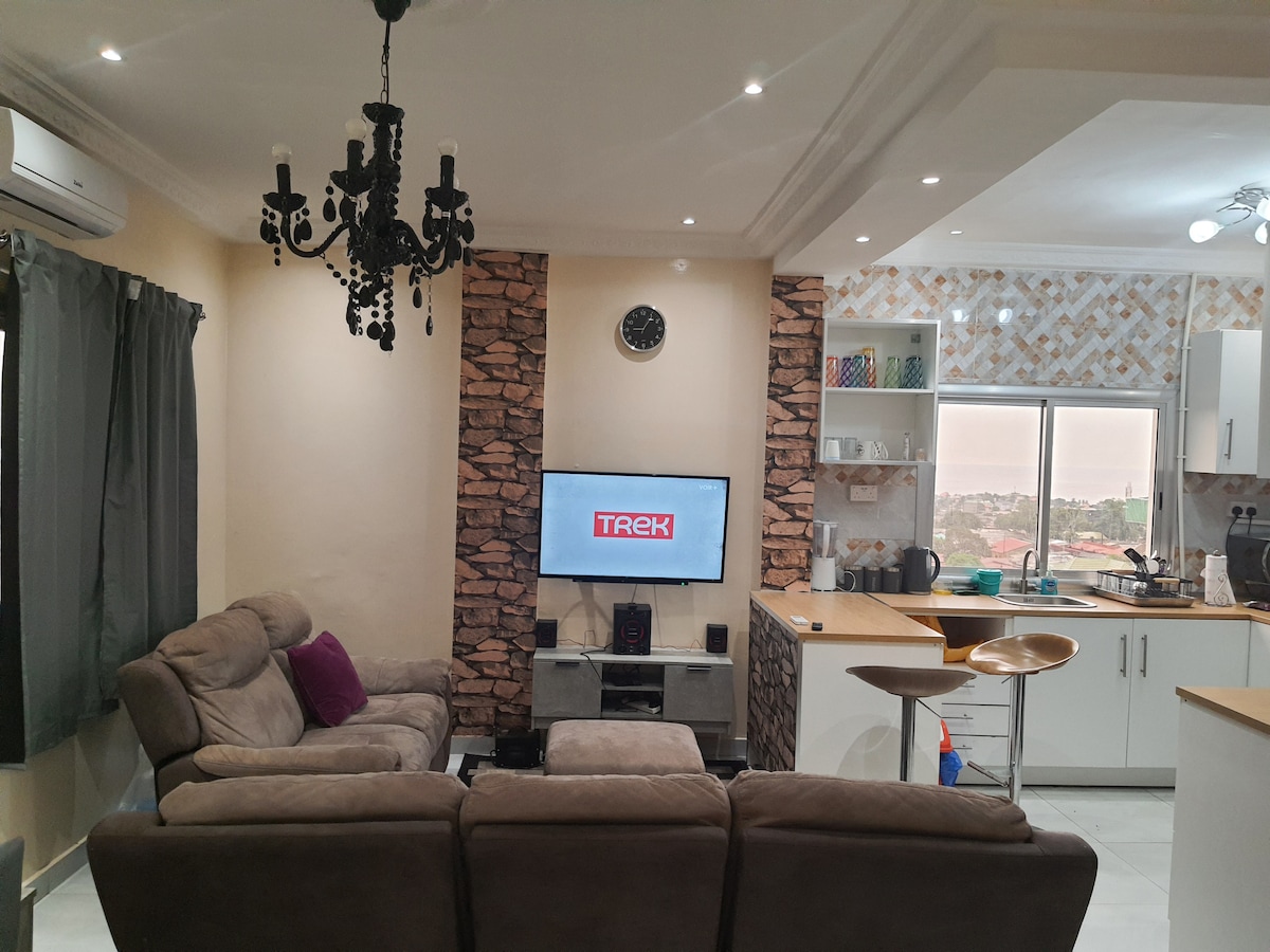 Apartment is located in Gbessia conakry, it's 10mns drive from the international airport Ahmed sekou Toure, 20mns from US EMBASSY and 25mns from Kaloum, close to several restaurants and very easy access. Security is guaranteed 24/7. cleaner will be 2 times a week, has washing machine, free parking, free electricity Apartment included 1 bedroom with private bathroom, visitors Wc, living room with kitchen, large terrace, air-conditioning, hot water. Located on 4th floor No lift.