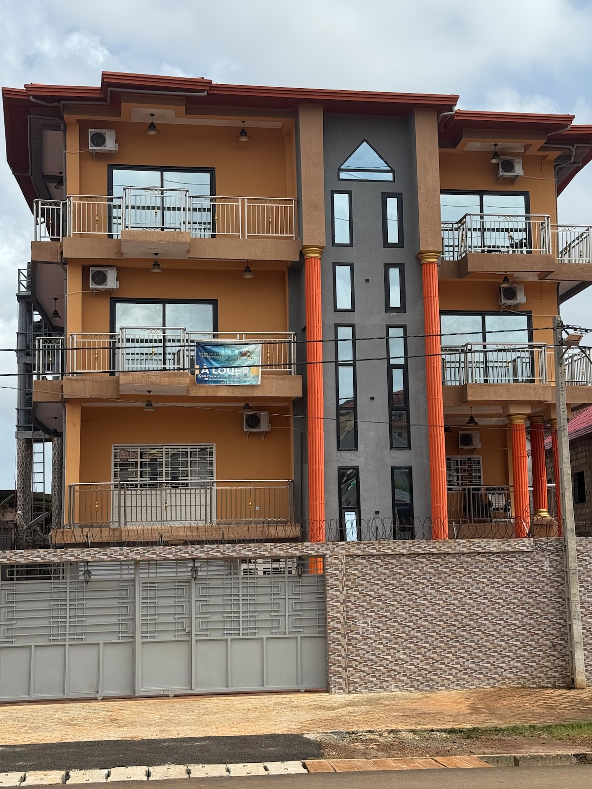Maison entièrement équipée à kipé avec stationnement : 3 chambres, 2 salles de douches, salon et cuisine. Très bien située ( à 100 mètre du bord de la route T2, à 400 m du restaurant seven eleven, non loin de l'hôtel Sheraton et du centre commercial Prima Center). Tout confort : eau courante, chauffe-eau, climatisation, télévision, etc. La résidence dispose d'un gardien de jour et de nuit. Mise à disposition d'une box Internet à la demande (recharge à effectuer par le locataire).