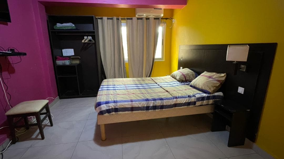 A Secured housing complex for you to enjoy individually or with the whole family. This deluxe apartment is located in the center of Kipe, Conakry, just minutes from popular local attractions such as Prima Center, Lycee Francais and the US Embassy of Guinea. Around 15mn from the airport. Enjoy our premium amenities like 24-7 WIFI connection and electricity, washer& dryer on the premises while you relax to any of our elegantly appointed rooms w/ entertainment system to make ur stay memorable.