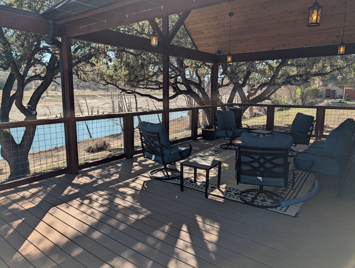 Update: The lake water level is really really low right now, most areas dry, we need some major rain! Quiet, peaceful, walking distance to pebble beach park. Private covered SMALL pool (Not heated) on property. NO PARTIES! House is private - inside gate Abundant deer to enjoy and feed from backyard. 2.5 miles to The 4 Way Bar & Grill (concerts) 2.6 miles to la Cabana (Mexican food) 24 miles to Sea World 31 miles to Six Flags Fiesta Texas 18 miles to Bandera, Texas (cowboy Capital)