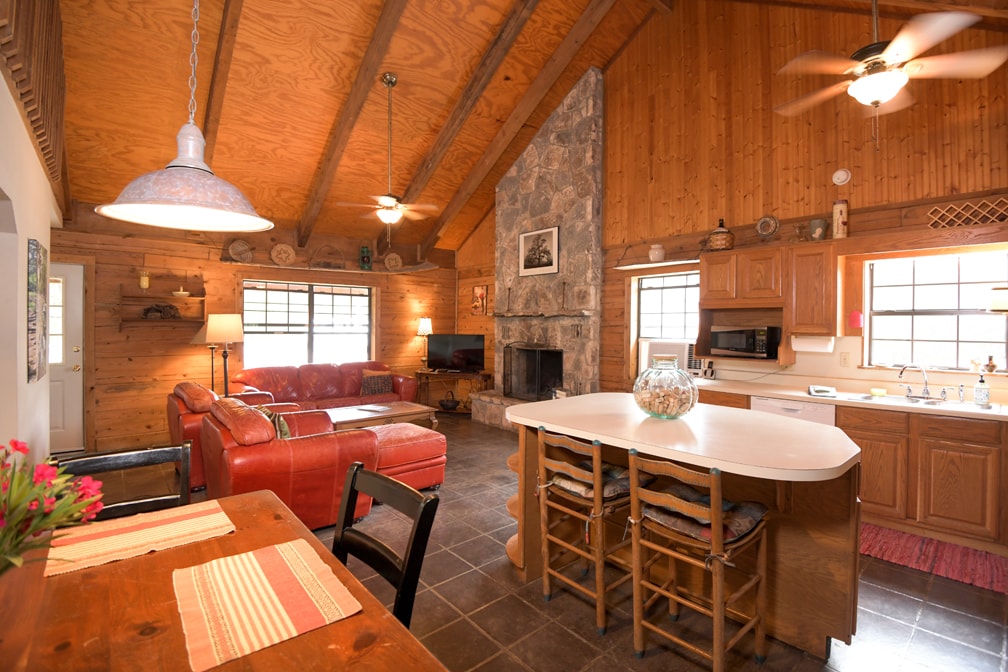 If the Hill Country is calling you, Creekside Lodge has All the outdoor looks, creeks, views, grilling area, etc.... Plus cozy inside charm, with a rock fireplace, log cabin, open kitchen area, and a backporch that one could spend hours on....Located only a few minutes from Lost Maples Park, which many Texas magazines praise for their Fall color and maybe 30 minutes from Texas's number one, Garner State Park!