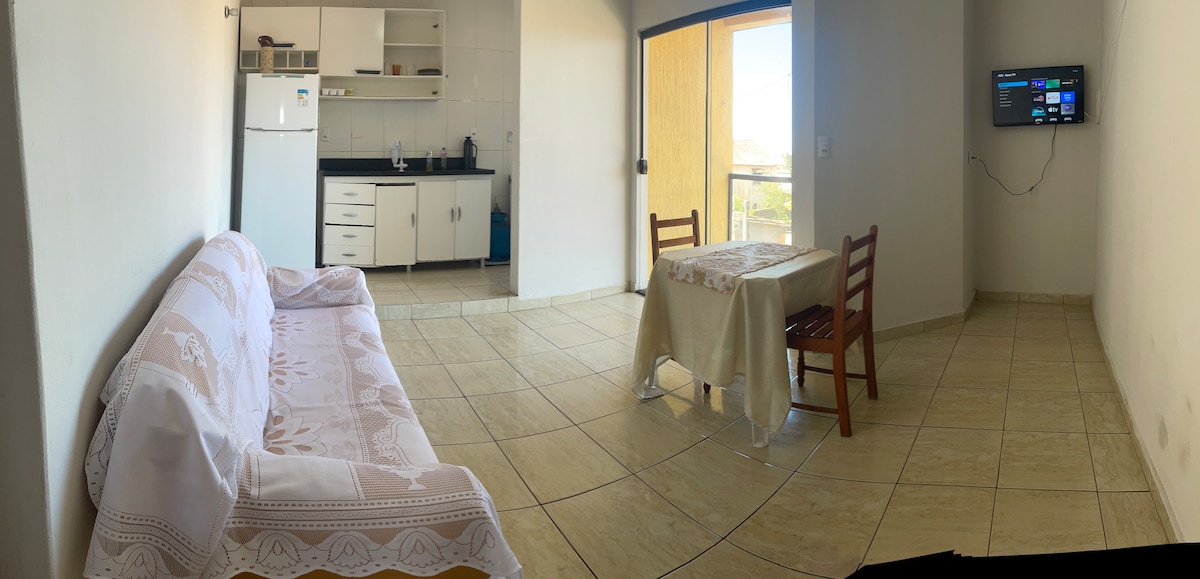 Apartamento no centro de São Mateus, 12 km da Maravilhosa ilha de GURIRI. Aqui você irá encontrar tudo para sua estadia, cozinha completa, ar condicionado, cama, mesa e banho. Próximo a bancos, prefeitura, cartórios, rodoviárias, muito bem localizado.