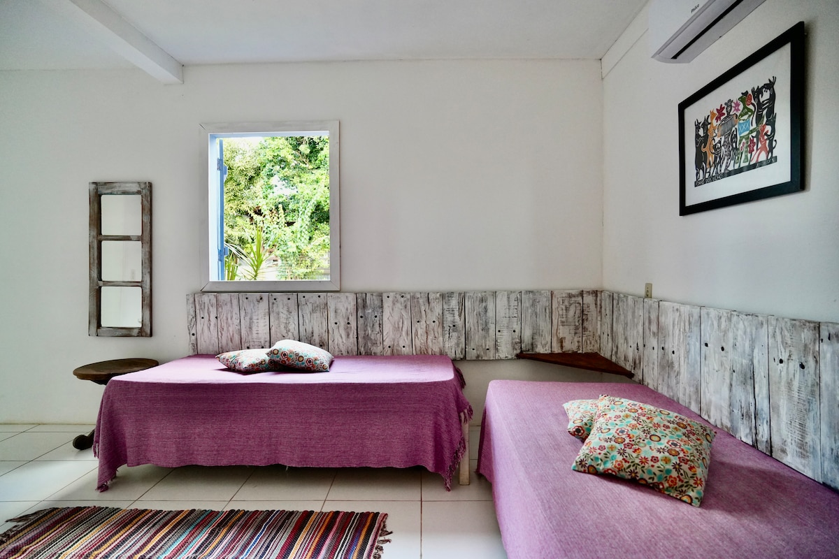 - Refúgio perfeito para um casal que busca tranquilidade, no centro da vila e a apenas 15 minutos da praia. -O ambiente é acolhedor, cercado por árvores, passarinhos e orquídeas. -A cozinha é equipada, ideal para preparar refeições. -O ar-condicionado garante conforto nos dias quentes. -A varanda privativa convida a momentos de paz e desconexão. -O quintal compartilhado oferece espaço ao ar livre, ideal para relaxar. -Um lugar para se desconectar e aproveitar a calma da vila.