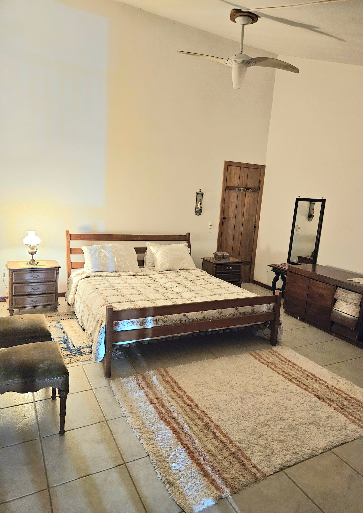 O espaço que disponibilizamos para a hospedagem fica no andar de cima de nossa casa. É um ambiente com decoração rústica e aconchegante, com vista privilegiada para o monumento natural Serra da Ferrugem e para o Pico do Soldado, o ponto mais alto de Conceição do Mato Dentro.