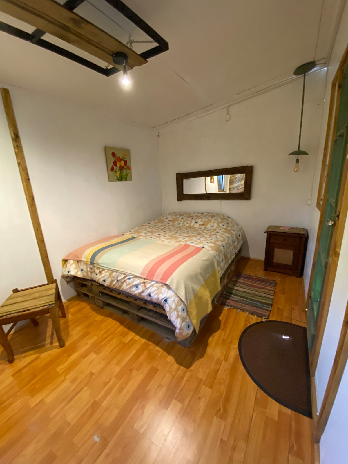 Disfruta de la sencillez de este alojamiento tranquilo y céntrico de esta cabaña para 4 personas. Agua caliente, cocina compartida, lavadora, cocina, dos baños, balcón. Accesible a todas las comunas del gran Concepción ya que la locomoción es expedita, ideal paseo por zonas turistas de alrededores de la gran cuidad. Puedes llegar e ir caminando a bancos, supermercados, comercios, farmacias. Te entregamos un afiche con los centros turísticos más famosos y cómo acceder a ellos.