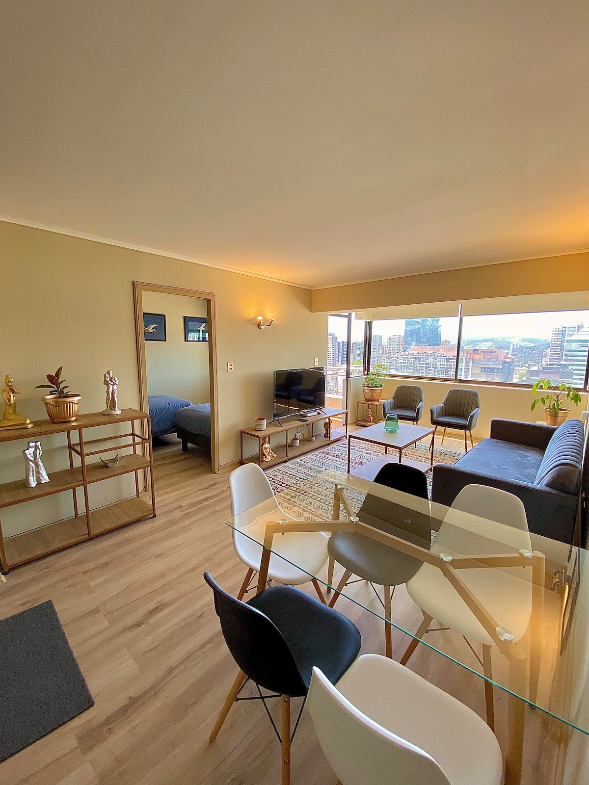 El departamento es un cómodo espacio para tu descanso, tanto en su interior como en su entorno, a una cuadra del hermoso Parque Ecuador. Excelente acceso a la ciudad y al edificio. Ubicado en uno de los mejores barrios de Concepción. Cercano a servicios públicos, bancos, tiendas, restaurantes y bares. El estacionamiento se paga por separado y se coordina con anticipación a la llegada.