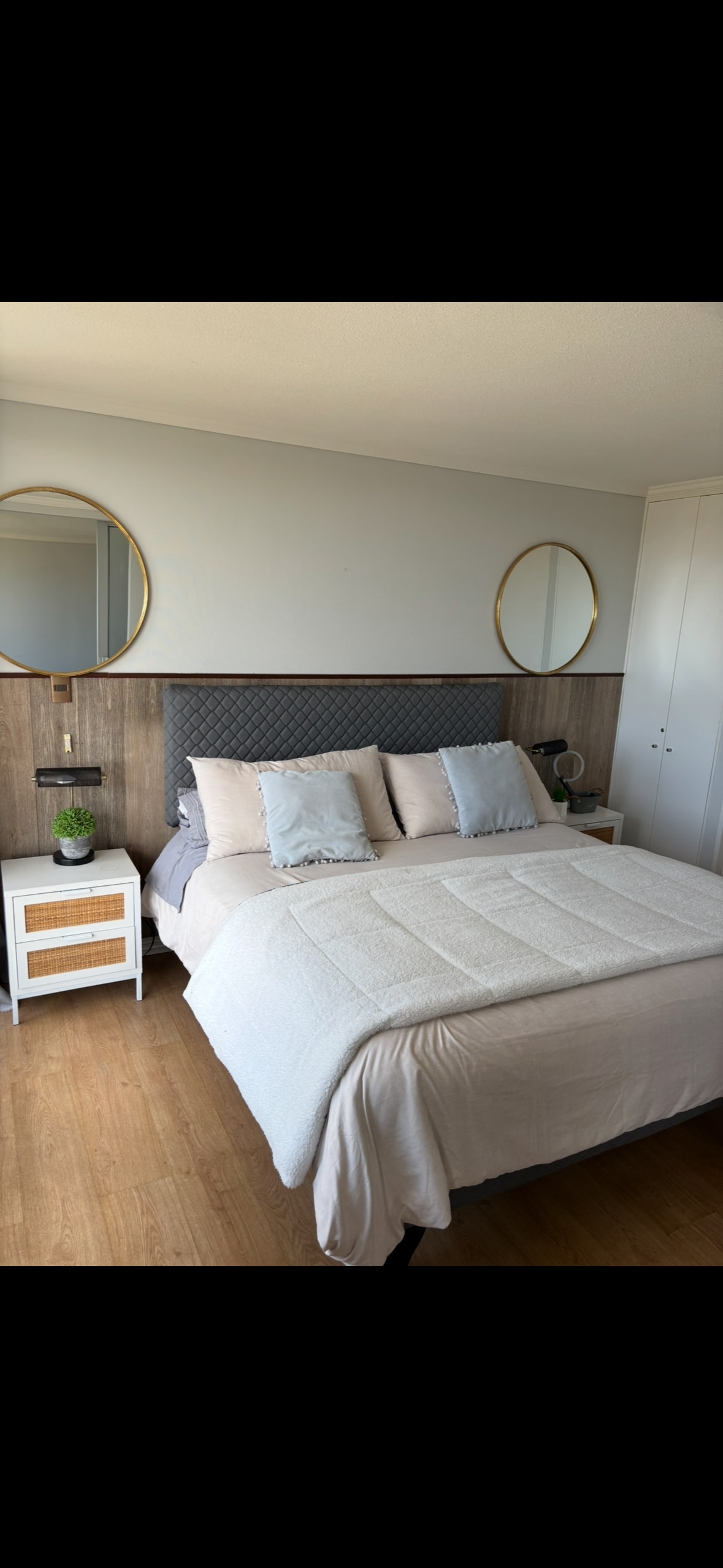 Disfruta de la calidez de este alojamiento tranquilo y céntrico, con terraza y linda vista a la laguna Las tres Pascualas, a pasos de U. San Sebastian, supermercado, cercano a U. de Concepcion, mall y aeropuerto, con la mejor conectividad hacia todos las comunas del gran concepción. Cuenta con 2 dormitorios, 2 camas, 2 baños equipados con toallas, papel higiénico y jabón, cocina full equipada, te, café, azúcar. Comedor, zona de Tv y wifi.