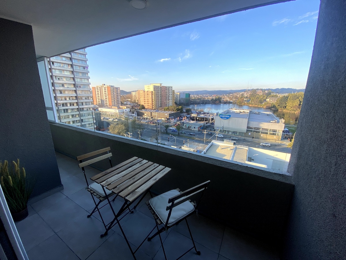 Alojaniento seguro y céntrico. Instalaciones nuevas, estacionamiento privado, habitación matrimonial con Tv, calefacción y baño en suite + habitación con cama nido de 1 1/2 plaza. Living comedor con sofá cama, calefacción y TV con acceso a Internet y TV cable . Cocina equipada, lavadora/secadora, horno microondas y todo lo necesario para cocinar. Terraza con mesa, sillas y una hermosa vista. Acceso previo reserva a gimnasio. A cuadras del centro de Concepción, locomoción y Líder express.
