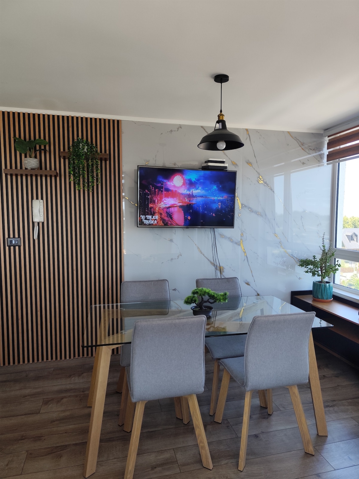 Relájate con toda la familia en este alojamiento donde la tranquilidad y la naturaleza se respira. Departamento Ubicado en sector estratégico del gran Concepción, en el hermoso Barrio de Brisas Del Sol, a pasos del Casino Marina del Sol, Puerto Marina, Espacio Marina, Antu Parque de Diversiones y Restaurante Safari. Cercano a Mall Plaza del Trebol ,✈️Aeropuerto, Clínicas, Supermercados, Universidades y Estaciones de Combustible. A 15 min. del Centro de Concepción y a 20 min. de Talcahuano.
