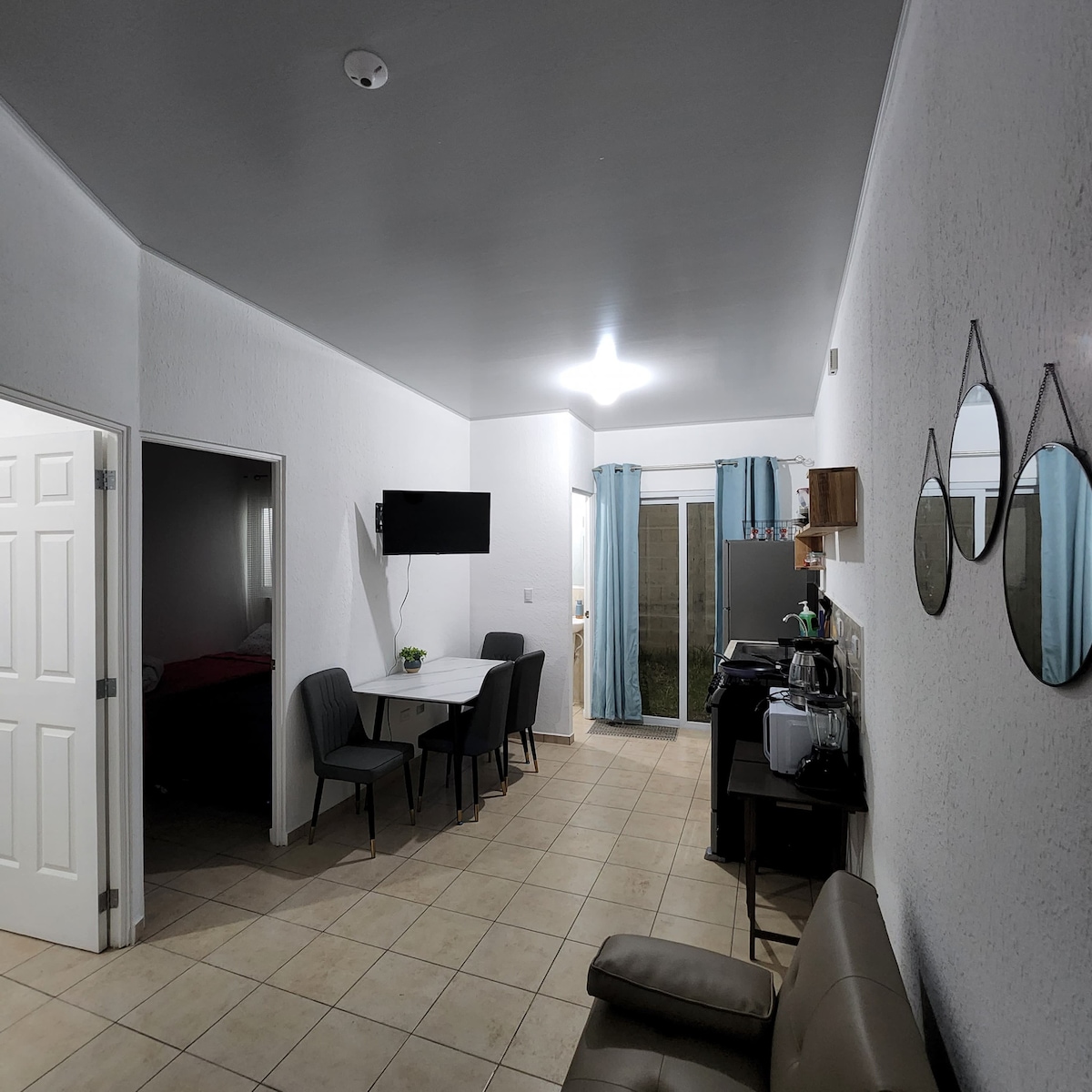 Stay in comfort at our 3BR/2BA casita in central Santa Ana! Walk to the park, skate park, restaurants, and the historic city center. Enjoy A/C in every room, WiFi, free parking, and a complimentary traditional Salvadoran breakfast. Just 10 min from Metrocentro, Walmart, and nightlife, and within 1 hr of Lago Coatepeque, volcanoes, and beaches. Perfect for families or groups up to 6!