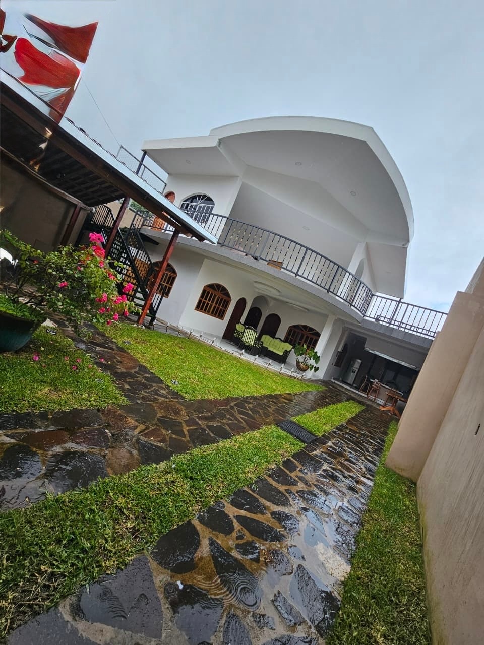 Entire house in a private complex Villas Suizas I, located 3 blocks from the main road with access to all types of vehicles... It has beautiful gardens, a clubhouse, a soccer and basketball court... With a nice FIRE PIT and 2 minutes from the famous Albania Labyrinth, 10 minutes from La Laguna Verde... You can also go and have fun in the beautiful towns of Apaneca, Ataco, Juayua, and Salcoatitan.