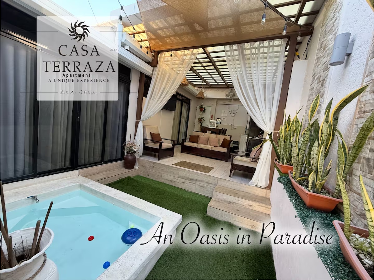 In the heart of “La Ruta de Las Flores” you will find “Villa Los Martino”, in the relaxing and peaceful Village of “Concepción de Ataco” with the comforts of the city. You can enjoy a pleasant rest, a cool climate, a beautiful garden and a nice terrace. Also, lovely, cozy and family-friendly house. Lots of clean air surrounded by garden. A lot of activities can be done in a few minutes like: canopy, water falls, good restaurants, parks, hiking areas and colonial churches