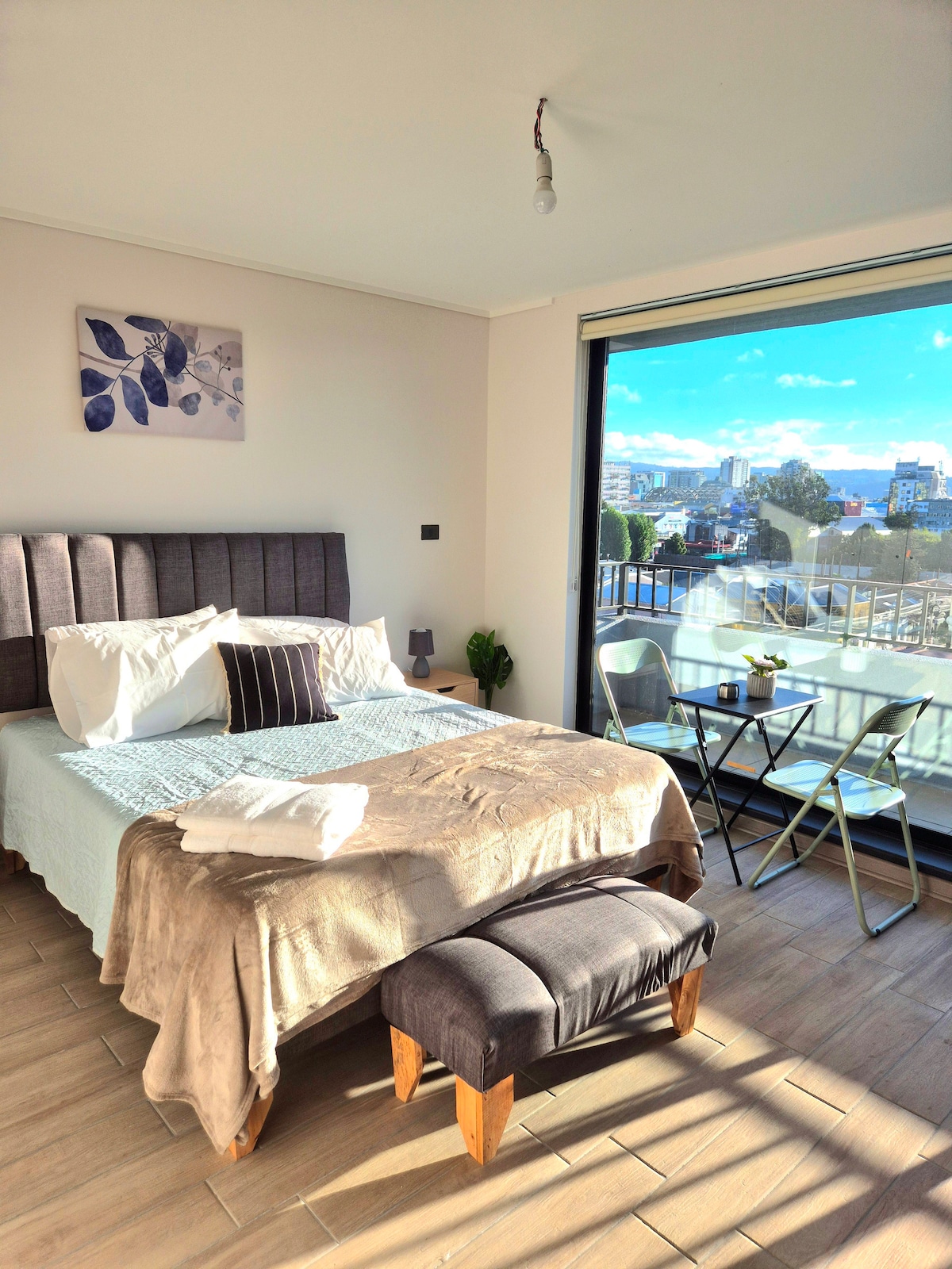 Disfruta de nuestro departamento de 1D1B en Concepción, cerca de universidades, transporte, centros comerciales y restaurantes. Ideal para 2 a 4 personas, el departamento incluye cama de dos plazas, 1 sillón cama doble, cocina equipada, baño con tina, smart TV y mesa para trabajar/comer. El edificio ofrece gimnasio, sala de coworking, sala de entregas, lavandería, quinchos panorámicos y salón gourmet. ¡Conveniencia y confort en una ubicación central!