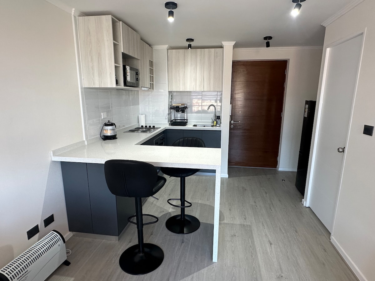 Departamento nuevo , moderno de 2 ambientes full equipado . Orientación Nororiente , otorgando sol de mañana , medio día y una linda vista a la ciudad . Ubicado en una de las calles mas importante del Gran concepción . Cercano a Supermercados , Bancos , Mall , Hospital , Universidades , Parques y restaurantes . Un espacio ideal para conocer la ciudad en un entorno seguro y acogedor . *NO HAY ESTACIONAMIENTO*