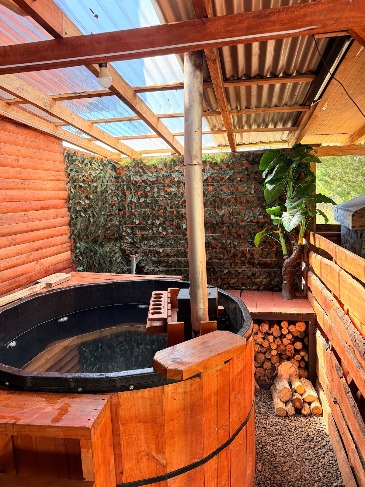 Cabaña boutique con tinaja privada en medio del bosque. Ideal para parejas, escapadas románticas o viajes de trabajo. Incluye leña, cocina equipada, juegos de mesa y parrilla. Vive el glamping con todas las comodidades. ¡Pet friendly!