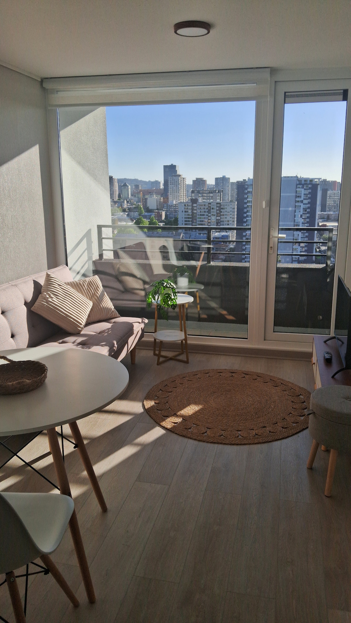 Your perfect stay in Concepción! Modern 1-bedroom apartment, ideal for travel, work, or a quick stopover. Just 5 min from the airport and 3 min from the mall. Safe and quiet residential area. Enjoy comfort, style, and everything you need for a great stay. 🛏️ Double bed + single sofa bed 🌇 Private terrace 🏋️ Gym + laundry access 🚗 Free parking 📡 Fast WiFi + TV 🍳 Fully equipped kitchen Book now and feel like home!