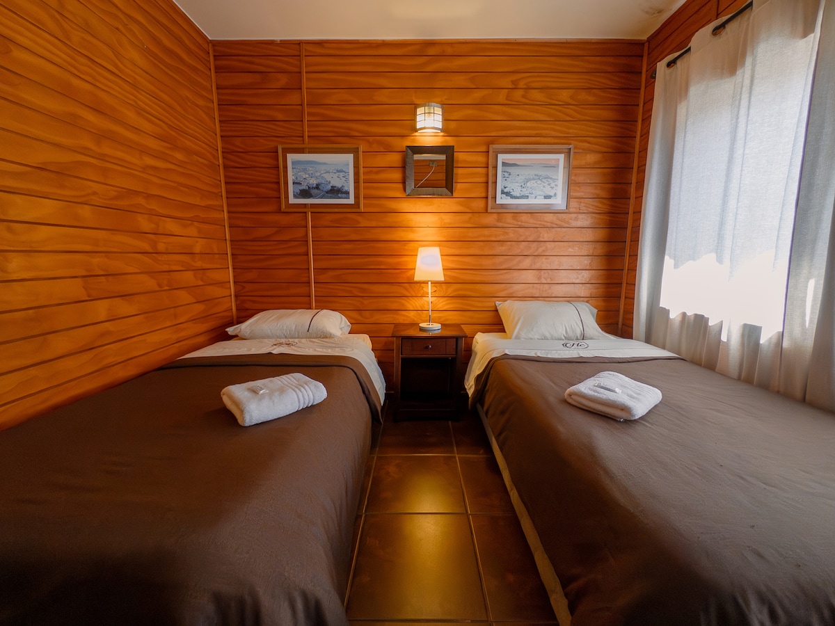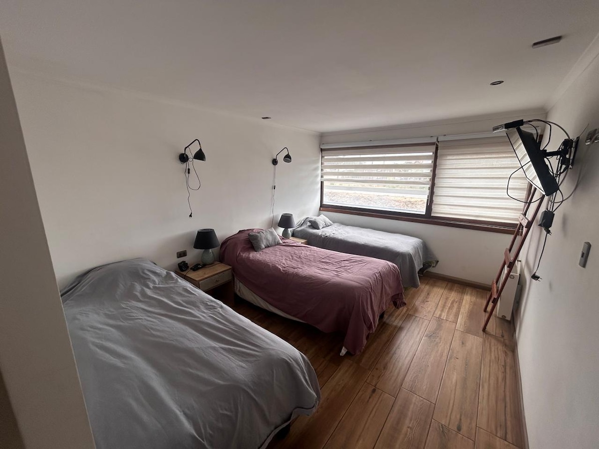 Disfruta del fácil acceso a Terminal de Buses, a 5 minutos del Centro de Concepción. Al lado de la ruta 5 Con fácil acceso al aeropuerto. Ideal para trabajadores, grupos familiares etc. Habitación con dos Camas separadas para su mejor comodidad.