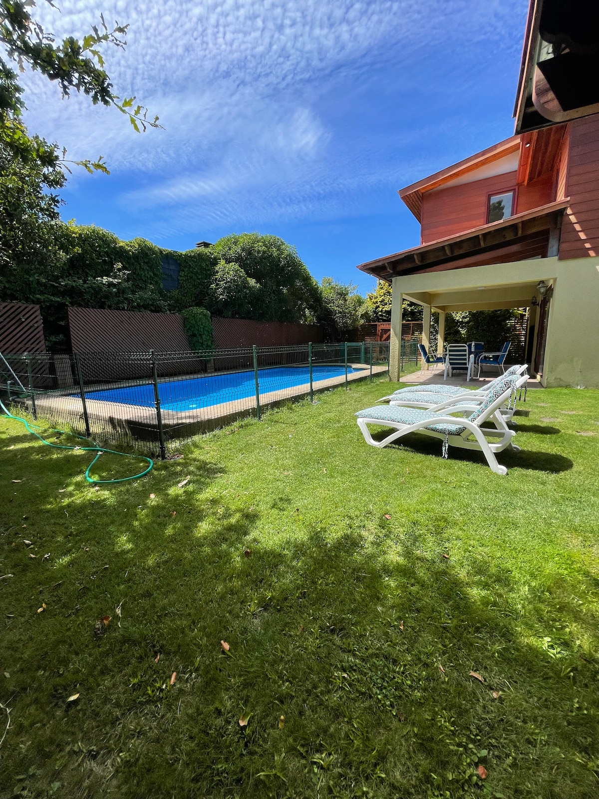 Con cocina full equipada, living comedor amplio. Estacionamiento, WiFi rápido y Smart TV. Espacio extra del condominio: (Estas áreas son comunes) Área de pérgola: tiene un living y comedor exterior, lava platos, cocina, y parrilla. No esta permitido hacer fiestas. Está emplazada cerca de la Laguna Las Tres Pascualas, Universidad San Sebastián, y Plaza Condell. En el lugar hay dos casas, cada una se reserva independiente de la otra y se puede reservar ambas para grupos de hasta 13 personas