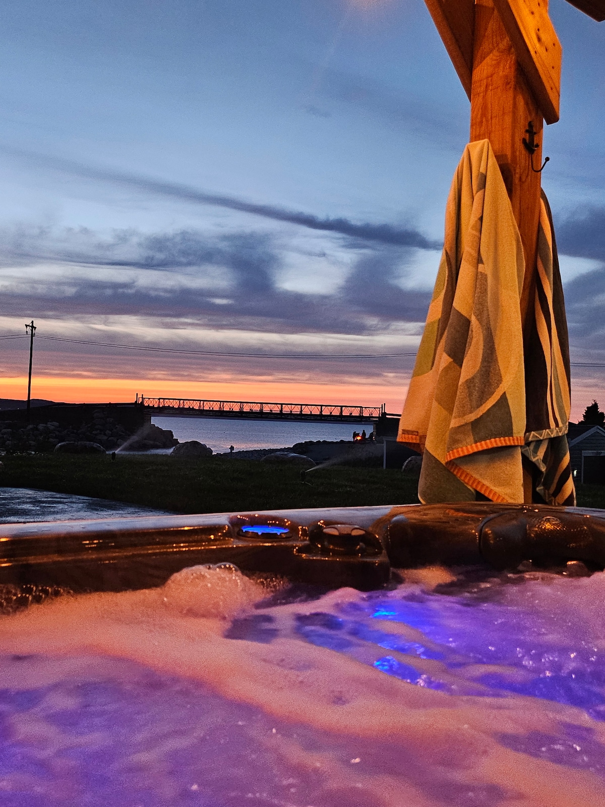 Located in Bay Roberts this secluded coastal cottage is a new build that offers rustic charm with a modern twist along with a beautiful ocean view. It has 2 bedrooms, 1 bathroom, 2 communal areas, and a well equipped kitchen. It also has TV/Internet and a mini split. Outside you can enjoy the comfort of a six- person hot tub, a koi pond, and berry picking in the summer and fall. The covered patio allows for all season use. Ideal for families and friends getting together.