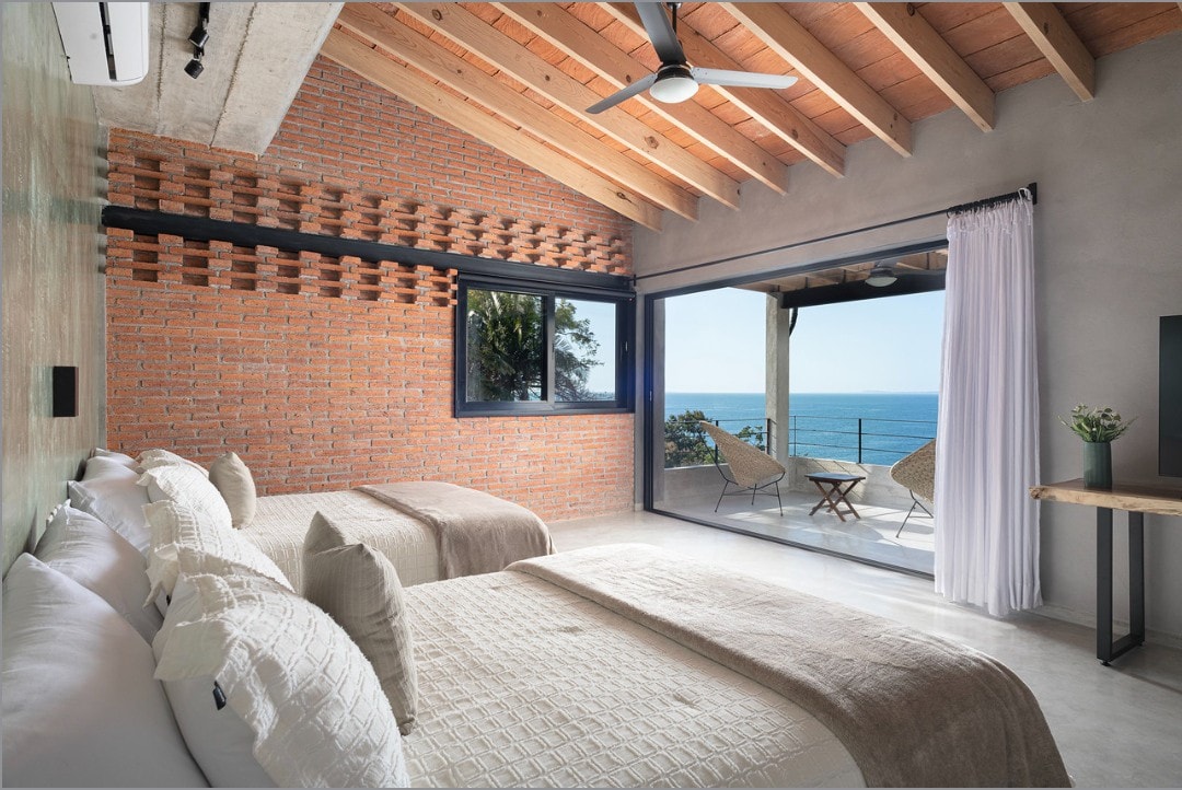 Luxury 5-bedroom Villa Loma is just 8 min from Puerto Vallarta’s vibrant Zona Romántica. Panoramic ocean views surround you from every level. The villa features 4 elegant en-suite bedrooms plus an extra TV room with 2 twin beds, total 6.5 bathrooms for total comfort. Relax on the main terrace with a heated pool and romantic firepit, or head to the rooftop jacuzzi for unforgettable sunset cocktails. Custom-made décor, spacious design, and modern amenities make this the perfect upscale retreat.