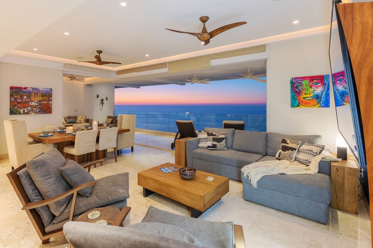 Incredible Oceanfront Location! Designed with you in mind, it is the perfect getaway for two with ocean views from all angles, including the shower! Features include air conditioning, luxurious multi-spray shower, King bed with memory foam topped mattress & sumptuous 100% organic cotton bedding, chic & stylish living room with custom daybed, 43" 4K Smart TV, WI-FI, & Bose sound system, beautiful kitchen and dining area, plus 265 sq ft of private outdoor space steps away from Los Muertos Beach.