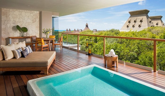 PURE LUXURY ! Occupancy : 8 (6A+2K) This suite has 2 B with king-size beds in each room 2.5 B with 2 Jacuzzi tubs, a private terrace with a plunge pool, separate private deck, a gourmet kitchen, 1 living area with sleeper sofas, 3TVs. Twice-daily maid service. Huge property to explore ! So many all kind of restaurants ! So many activities for adults and kids ! Golf. Spa. Meal package deal is available at the resort. Please contact me first for availability of the resort inventory.