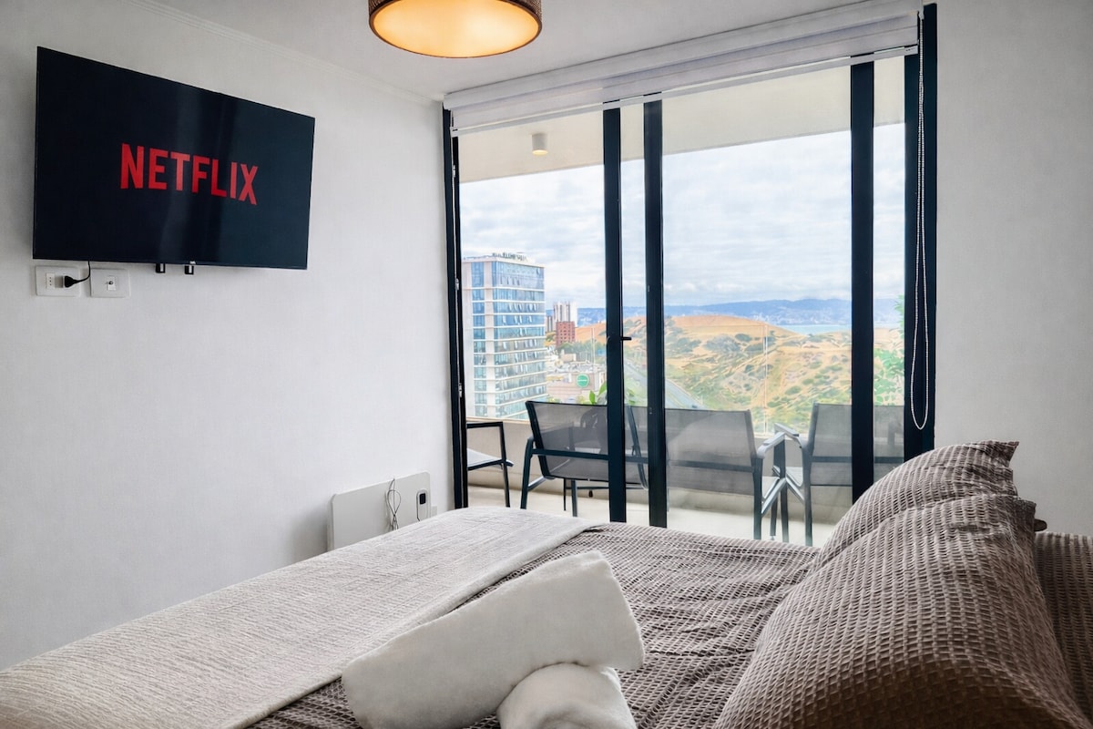 🌊 Modern Apartment in Concón – Steps from Beaches & Dunes 🌊 Enjoy a cozy, well-located space at Costa de Montemar: Bedroom with a double bed + sofa bed in living room (available upon request). Prime location: Just 5 min by car to beaches, dunes, and restaurants. Private parking included (Level -1). Fast WiFi and fully equipped kitchen for your comfort. Modern decor and bright, inviting atmosphere. The perfect home base to explore Concón’s stunning coast!