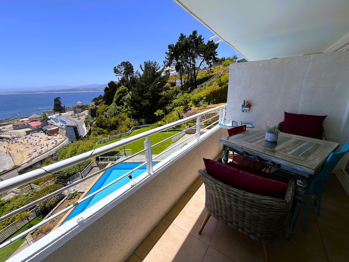 Welcome to "Oasis Costero" A new, fully equipped apartment on the waterfront with an ocean view in Concón. - Outdoor pool available between November and March. - Private parking. - Spacious terrace with ocean view equipped with an electric grill. - Includes bed linens and towels. - WiFi, and a Smart TV. - Fully equipped kitchen. - Safe and quiet area. - Just steps away from Beaches, Restaurants and Bike Paths.