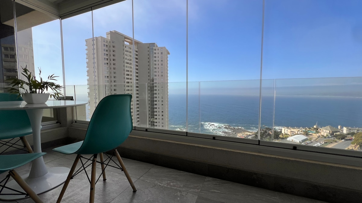 Welcome to "Oasis Costero" A new, fully equipped apartment on the waterfront with an ocean view in Concón. - Outdoor pool available between November and March. - Private parking. - Spacious terrace with ocean view equipped with an electric grill. - Includes bed linens and towels. - WiFi, and a Smart TV. - Fully equipped kitchen. - Safe and quiet area. - Just steps away from Beaches, Restaurants and Bike Paths.
