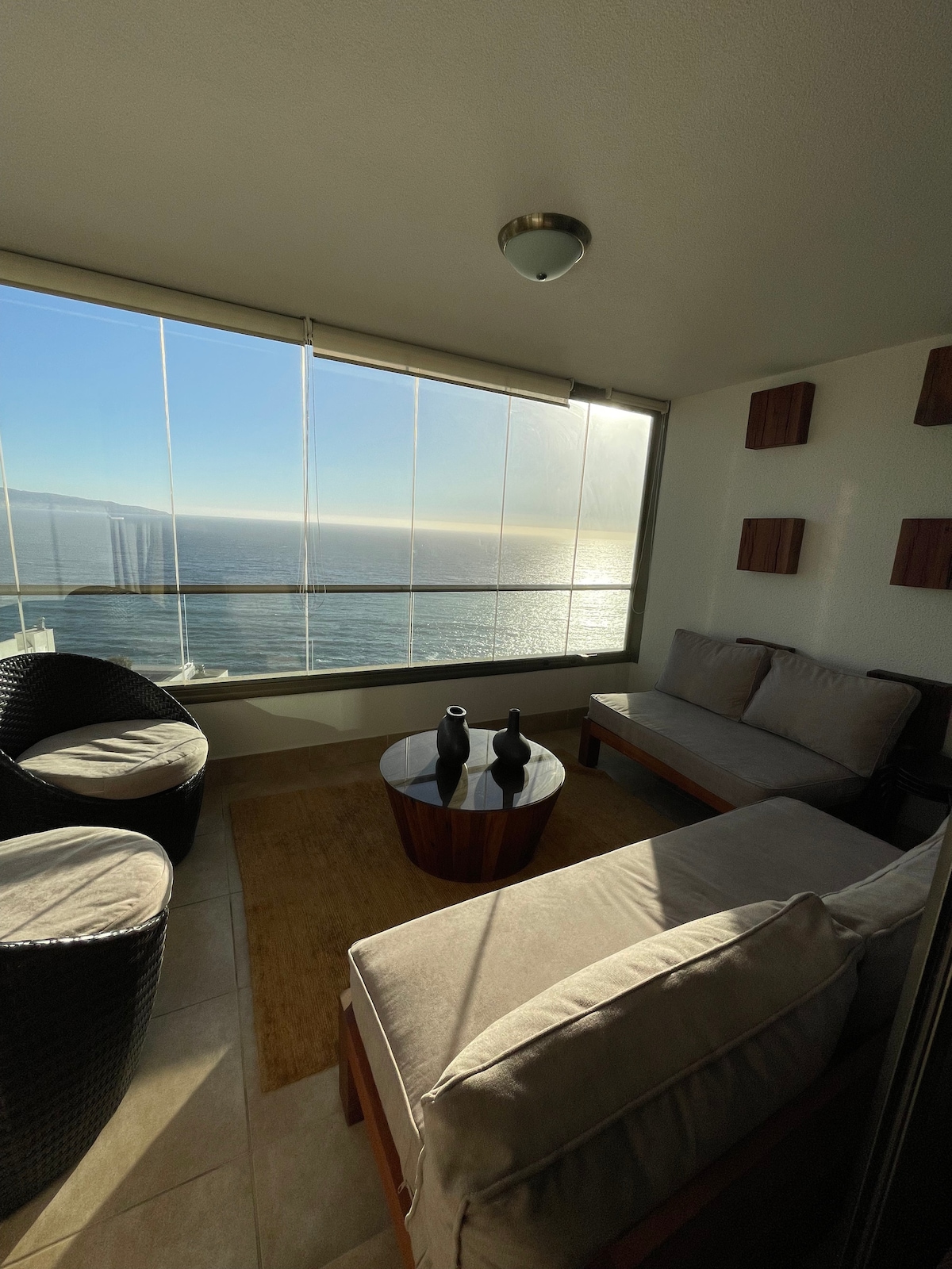 Exclusivo departamento nuevo 100% eléctrico, moderno y minimalista, ideal para viajes de negocios, en familia, grupo de amigos o surfers. Ubicado en el sector más exclusivo de Valparaíso (Costa de Montemar), comuna de Concón, cercano al club de yates, playas y locales comerciales,cafeterías, supermercado Jumbo y los mejores restaurantes de la quinta región. Tranquilidad y relajo asegurado con una insuperable vista al océano en todas las habitaciones y su gran terraza Zen.