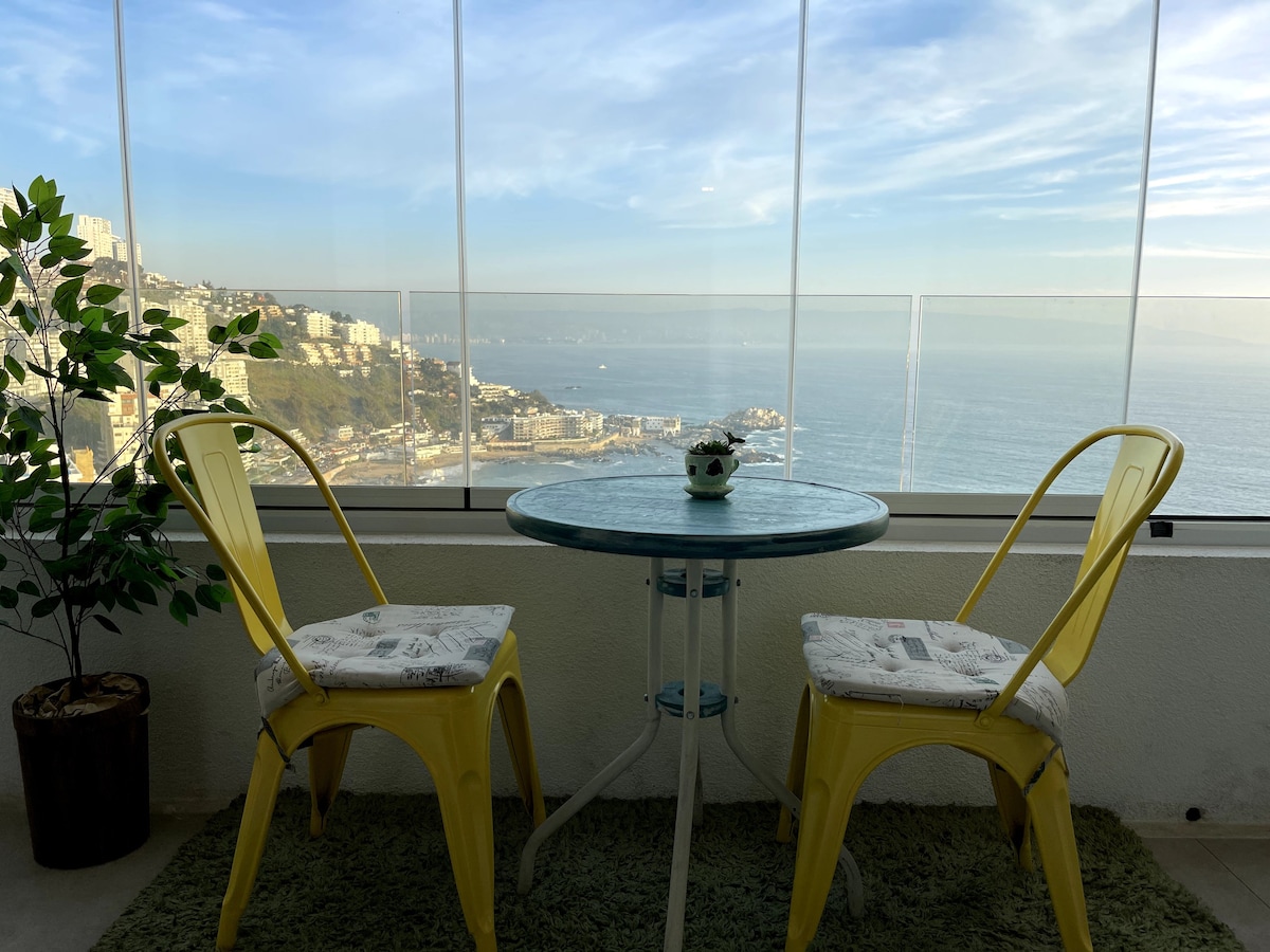 Disfruta de una experiencia única en este increíble departamento con excelente ubicación y una vista privilegiada a la Bahía y Cerros de Valparaiso. Departamento confortablemente y equipado. Cuenta con 2 habitaciones y 2 baños , una en suite, cocina / living integrado y terraza. Departamento Incluye estacionamiento.