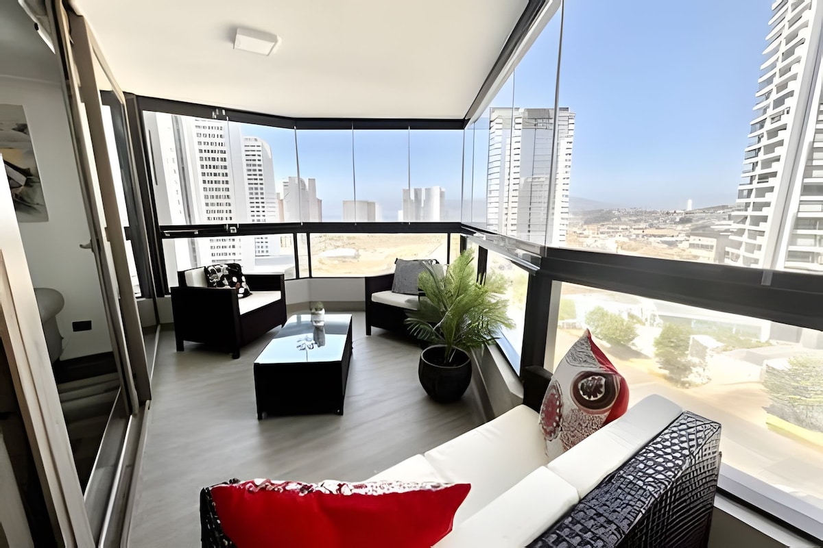 Wonderful apartment located in Costa Montemar (Concón) with an incredible and privileged view. Steps away from pharmacy, supermarket, and shops. Decorated, furnished, and equipped by professionals with high-quality furniture and details, for you to arrive and enjoy an excellent stay, ideally as a couple. It has private parking, wifi, and a smart TV. Equipped with a hairdryer, sheets, and towels.