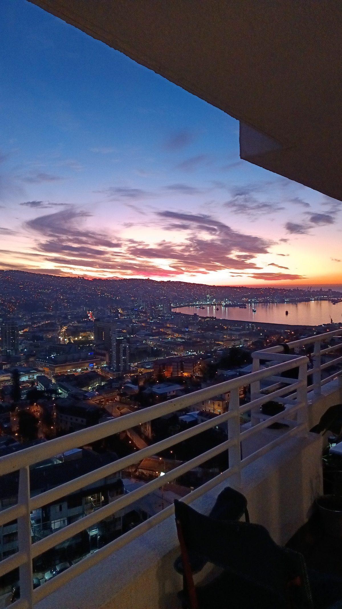 bello departamento con una vista increíble de Valparaíso desde su terraza, ideal para dos personas. Completamente equipado, se encuentra en un edificio residencial en el centro de la ciudad. además de contar con: Piscina, Gimnasio, Salón de estudios, Terrazas con vistas panorámicas. La ubicación es perfecta: a pocos minutos del acceso principal a Valpo y de la terminal de buses. Además, en la misma placa comercial del edificio, tienes acceso a un supermercado, una farmacia y otros comercios.