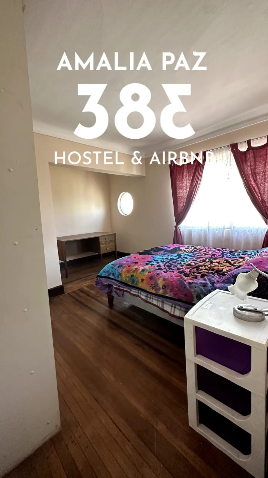 We are located strategically in Cerro Alegre, our house was declared a World Heritage Site. Spacious and bright room of 215 ft2, it has two French-style balconies and views of the main street, a double bed, large bunk bed, nightstands, heater, table and chairs. The bathrooms are shared, but you can request a private external bathroom for an extra charge (subject to availability). Can be used as a double, or using 2 bunk beds. If you are 3 or 4 people you have to add people to the reservation.