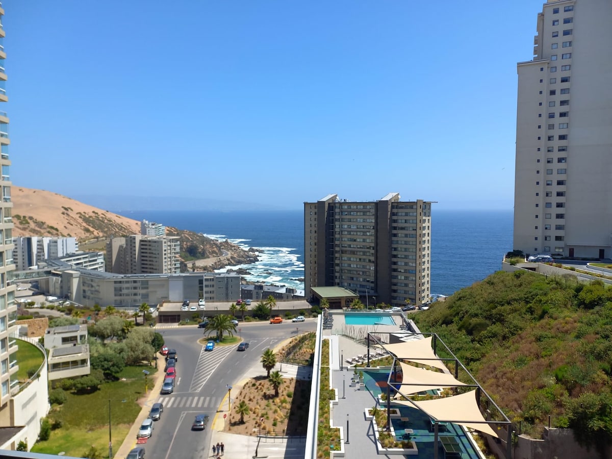 Lindo departamento con terraza vista al mar, un dormitorio un baño, completamente amoblado y equipado. Cuenta con wifi y cable para la tv smart de 42 pulgadas. Excelente iluminación. Edificio cuenta con consejería 24 hrs, 2 piscinas: exterior y temperada, gimnasio, sauna, quincho, lavandería y estacionamiento. Se encuentra cerca de supermercados, bencineras, farmacias. Ubicado a 5 minutos de la playa en auto, y 20 minutos a pie. Se ofrece descuento del 10% a estadías mayores a 7 días.