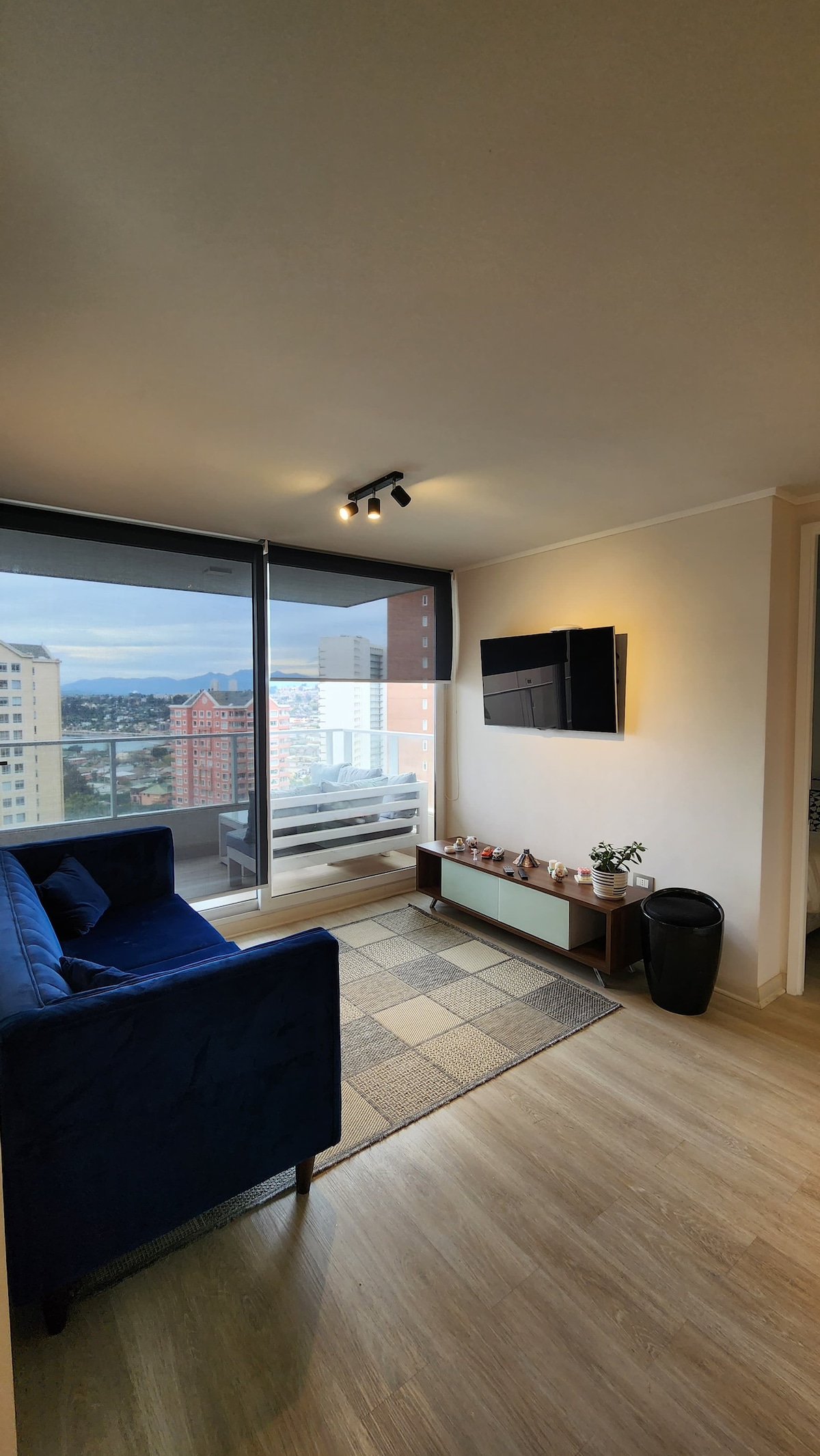 Departamento nuevo ubicado en barrio exclusivo de Con con, Costa de Montemar. El departamento está amoblado y full equipado con acceso a internet, piscina, gimnasio, arriendo de sauna, estacionamiento privado y cuenta con una vista panorámica espectacular. Existen supermercado y locales comerciales a menos de cinco minutos y se encuentra a 100 m de las dunas de con con, ideal para dos a tres personas, lo cual es perfecto para entretenerse y descansar.