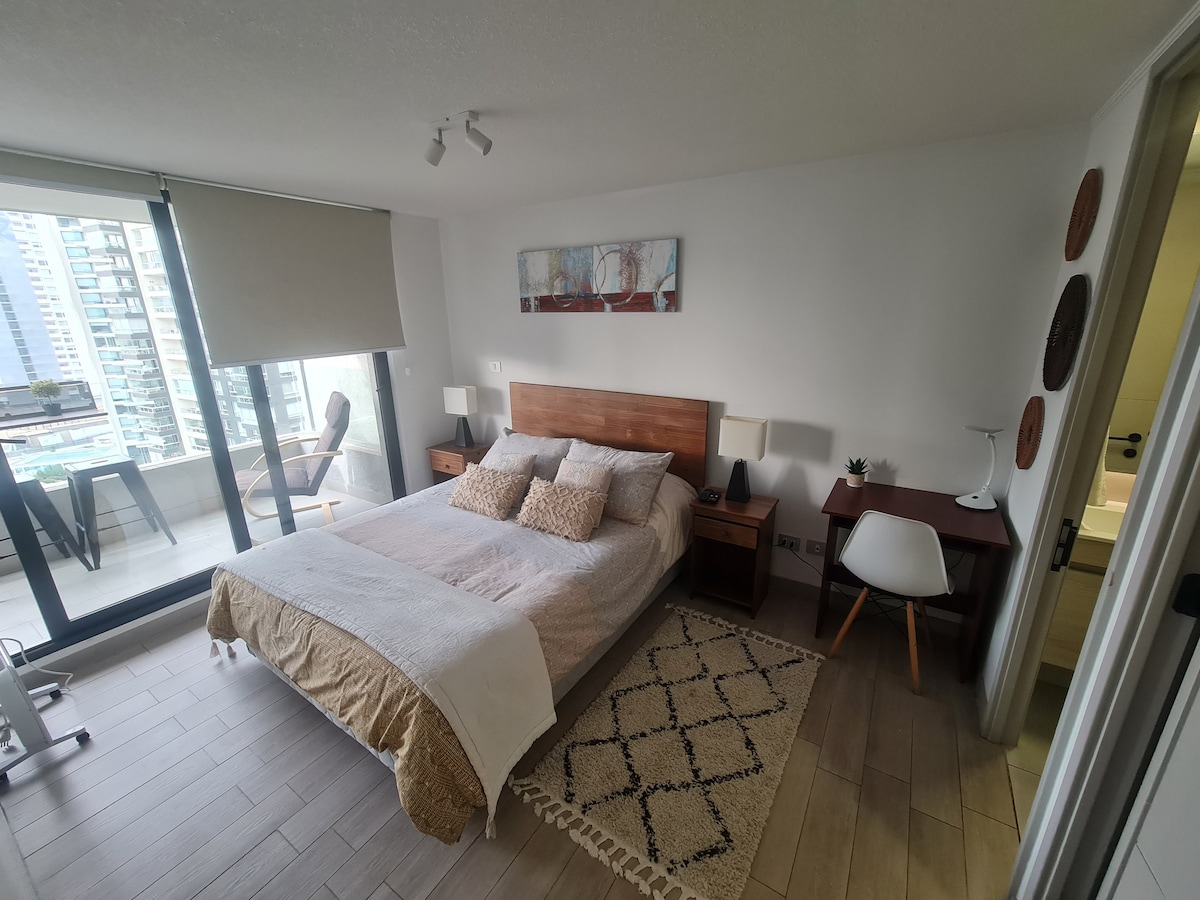 Hermoso apartamento nuevo y acogedor ideal para 2 personas. Ubicado en Costas de Montemar, donde podrás relajarte y disfrutar de un espacio cómodo y de un entorno tranquilo con áreas verdes. Estarás muy cerca de supermercados, bares y restaurantes de gran variedad gastronómica, a pasos de las dunas de Concón y a minutos de la playa. El departamento cuenta con estacionamiento, dormitorio con cama king, baño, wifi, 2 TV, cocina equipada, piscina y una linda terraza con espectacular vista al mar.