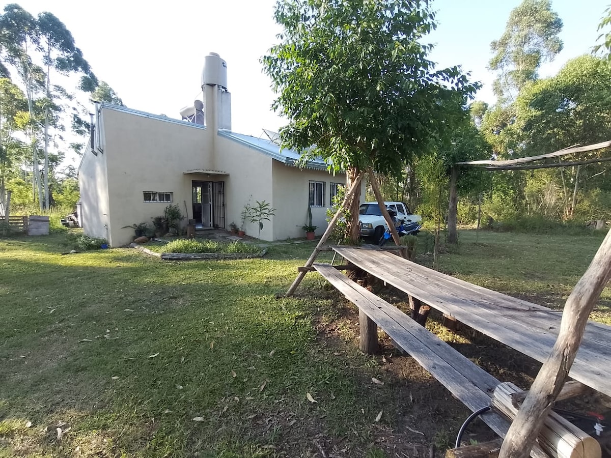 Alojamiento completo, a 30 minutos de zona termas, mucha naturaleza, avistamiento de aves y animales silvestre, muy tranquilo, lejos de ruido urbano. fácil acceso, a 500 mt avenida asfaltada, pileta, cancha de fútbol, amplio patio, 10 hectáreas de naturaleza virgen