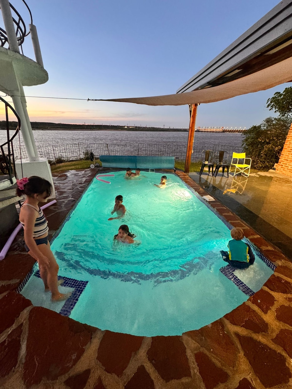 Hermosa casa con vista al Lago Salto Grande. La propiedad se encuentra ubicada a 25 km de la cuidad de Concordia, Entre Ríos. Cuenta con playa privada, piscina y cercano a las Termas de Concordia (11 km) y del complejo Termas de Ayuí Parque Acuático (8 km).