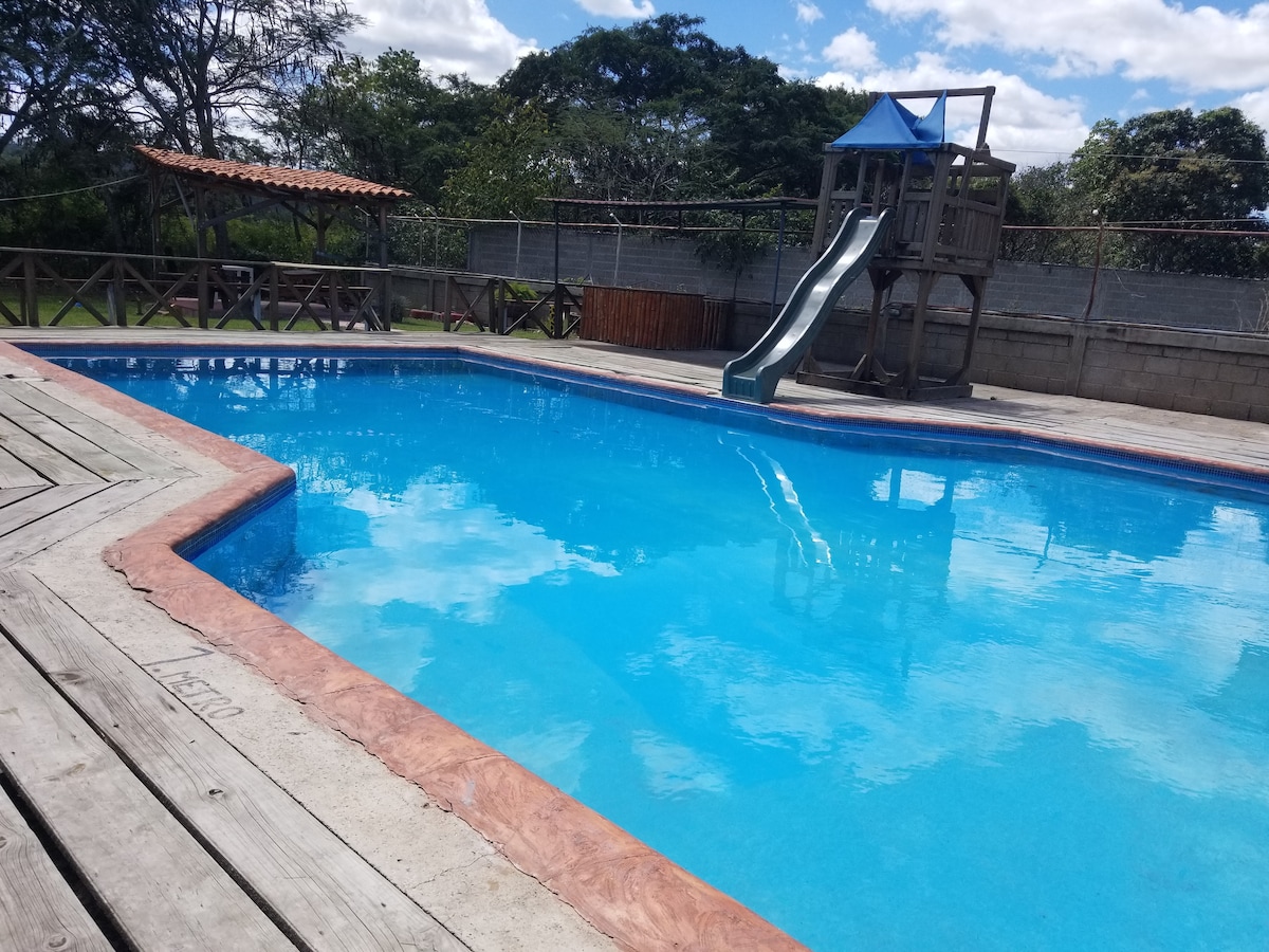 Ven a despejar tu mente por un fin de semana en nuestas cómodas cabañas y piscina . contamos con: cabaña #1: Una cama matrimonial para dos personas. Cabaña #2: Dos camas matrimoniales para cuatro personas. Habitación #3: Una cama matrimonial para dos personas Habitación #4: Una cama matrimonial para dos personas Si solamente el huésped es una persona, envíame un mensaje ya que podemos negociar el costo de la estadía.