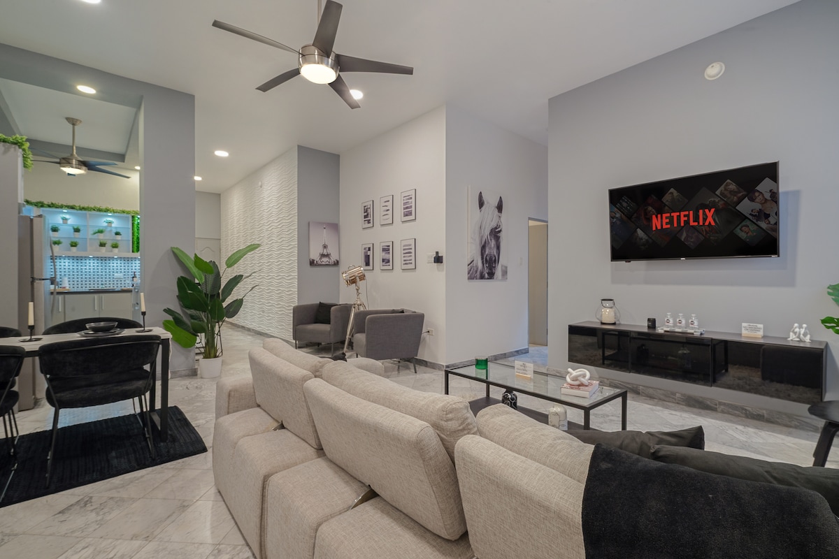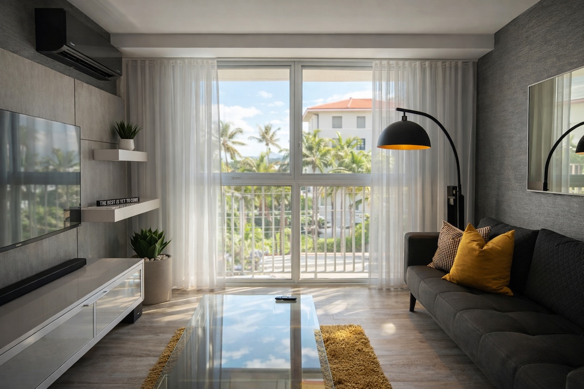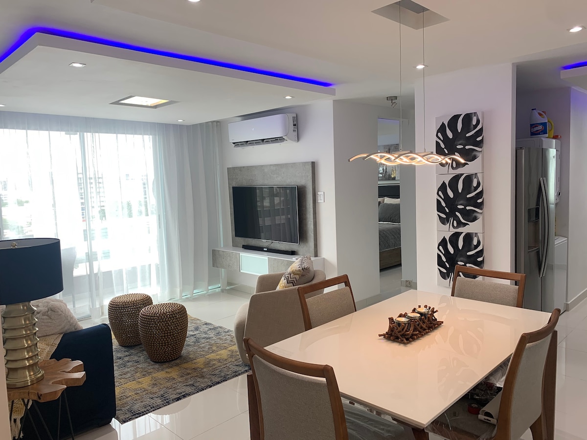 Luxury Apartment in the Heart of *La Placita* area. Walking distance to the best night life in San Juan, bars, restaurants, shops, groceries, ATM machines. 9 mins. drive from SJU airport. The Apartment is fully furnish and equipped with everything your need to enjoy your vacation. One master bedroom with queen size bed and one queen size sofa bed in the living area. The Apt. have water heater, washer and dryer , towels, hair dryer, linens, air conditioner in all areas 65” HD TV and Wi-Fi .