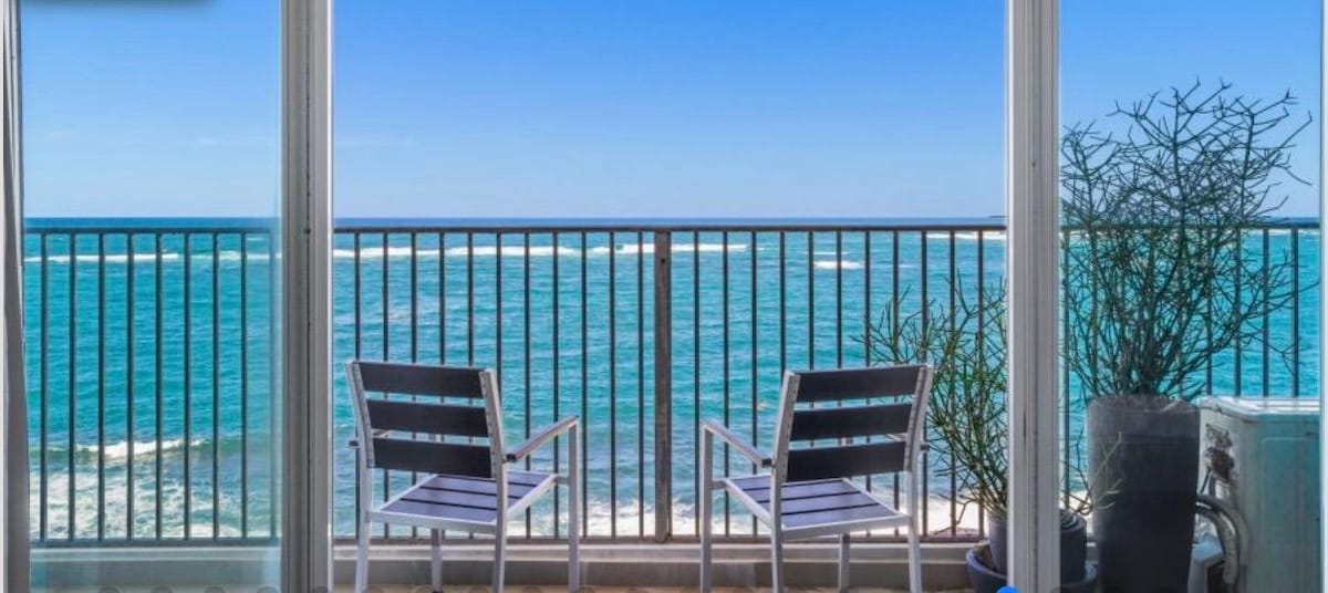 The BEACH Pad -A Modern- luxurious, beach front and full ocean view apartment. Enjoy your private balcony to watch the sun rise and set over the Atlantic ocean. The view is 180 degrees from left to right without any obstruction. The living room has a 75" tv, with a Sonos sound bar. Relax to music, have a glass of wine or cup of coffee made from the coffee machine provide , listen to the sound of the waves and feel the stress melt away.