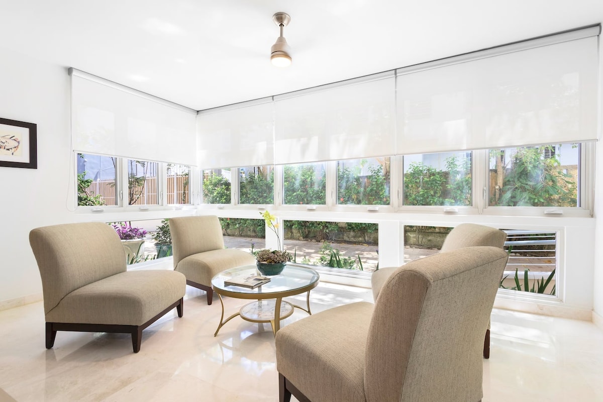 Kick back and relax in this calm, stylish space. Enjoy the beautiful view while drinking a glass of wine while watching the sunset or a coffee in the morning while you see the beautiful view of the ocean . Take a walk the Condado area and visit one of the many restaurants and bars . 5 minutes from Old San Juan , walking distance from la Ventana de Mar