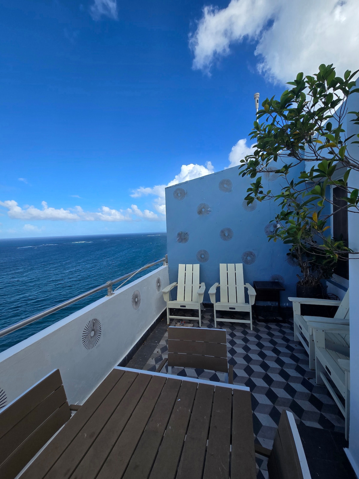 Panoramic Ocean-View Escape with Private Balcony (No Parking) Wake up to breathtaking, panoramic ocean views from your private balcony in this vibrant, sunlit studio. Designed for comfort and connection, this space is perfect for couples, solo travelers, or remote workers. Enjoy a fully equipped kitchen, high-speed WIFI, and the perfect mix of island charm and modern ease — all just steps from city life and the beach.