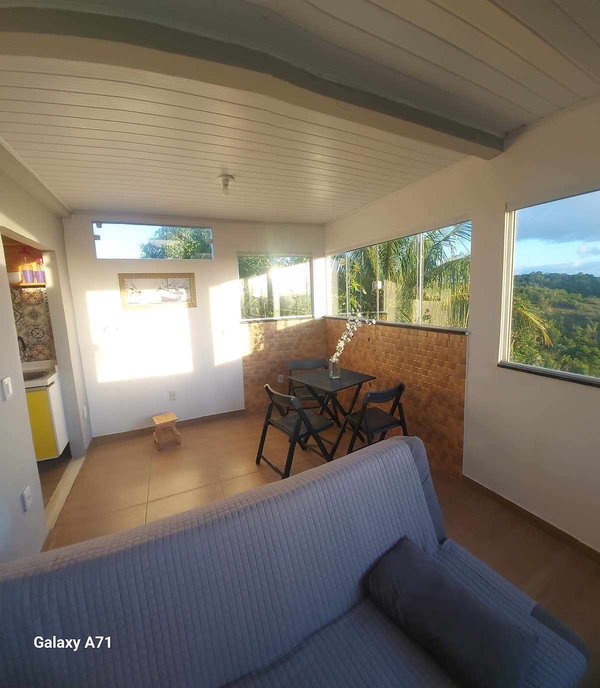2 quartos (1 suíte); 2 ar condicionados; 2 banh; 2 tv's; Sala estar/jantar; cozinha completa. Estamos na rua principal do Jardim Imbassa, há 600m da BR 89. Há 3 km da praia de Imbassaí; 5km da praia do Diogo e 15km da badalada praia do Forte. Bairro familiar, seguro e tranquilo. Muito arborizado com frutiferas. Próximo a mercadinho, lanchonete e opções de delivery. Uma vaga de garagem. Ideal para quem busca um lugar tranquilo, contato com a natureza e pets adoraveis.