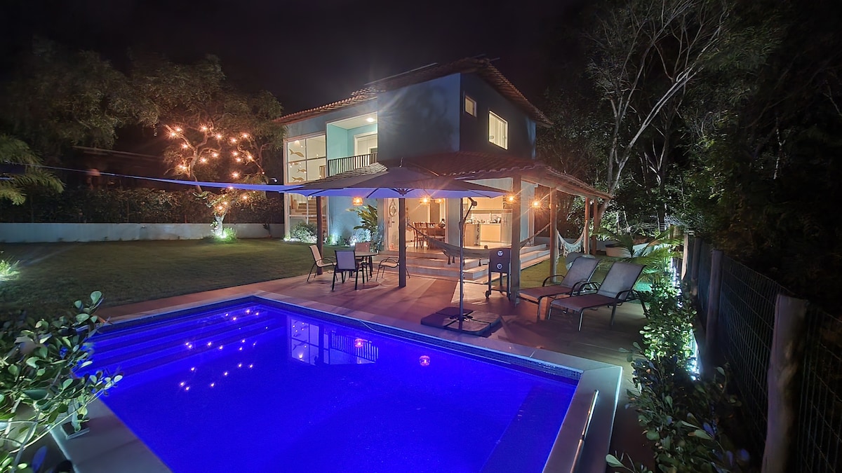 Casa charmosa, minimalista, com piscina exclusiva, área gourmet, e um jardim mágico de árvores adultas, que lhe dá a sensação de estar numa mini floresta. Situada numa área privilegiada da vila de Massarandupió, cercado de árvores, o Recanto AmarElo Bangalô é o lugar ideal para quem busca natureza, conforto e privacidade.