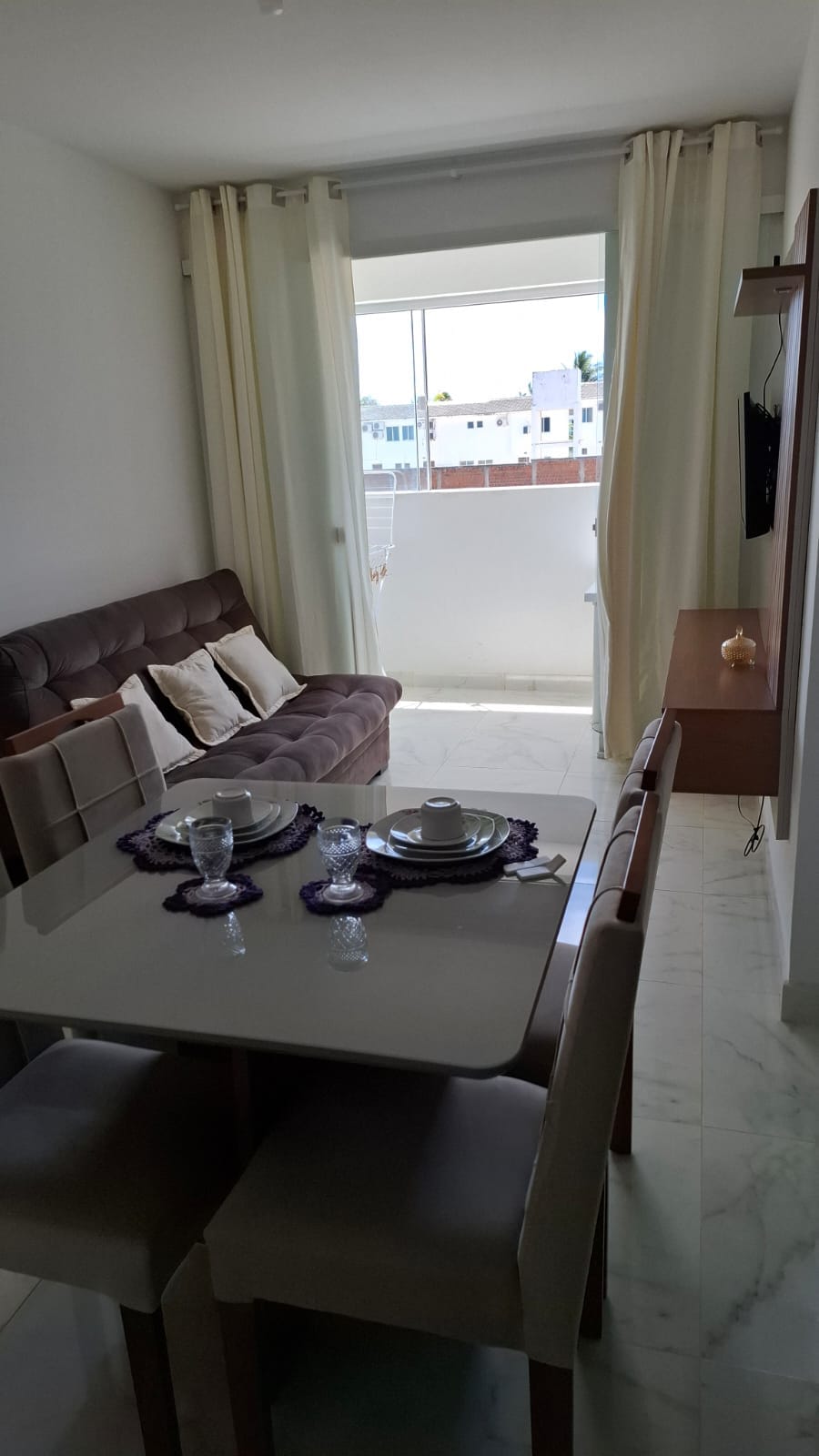 Enjoy unforgettable moments in this unique place, ideal for families. The flat is perfect to relax! Spacious, with a balcony facing the ocean and the pool, with views over all Tabatinga Beach. It has 2 double beds, 1 sofa bed, air conditioning and TV. Fully equipped kitchen. Home office area with excellent Wi‑Fi. Located in Tabatinga Residence Service, with great leisure facilities, 3 elevators, 24-hour security and private parking.