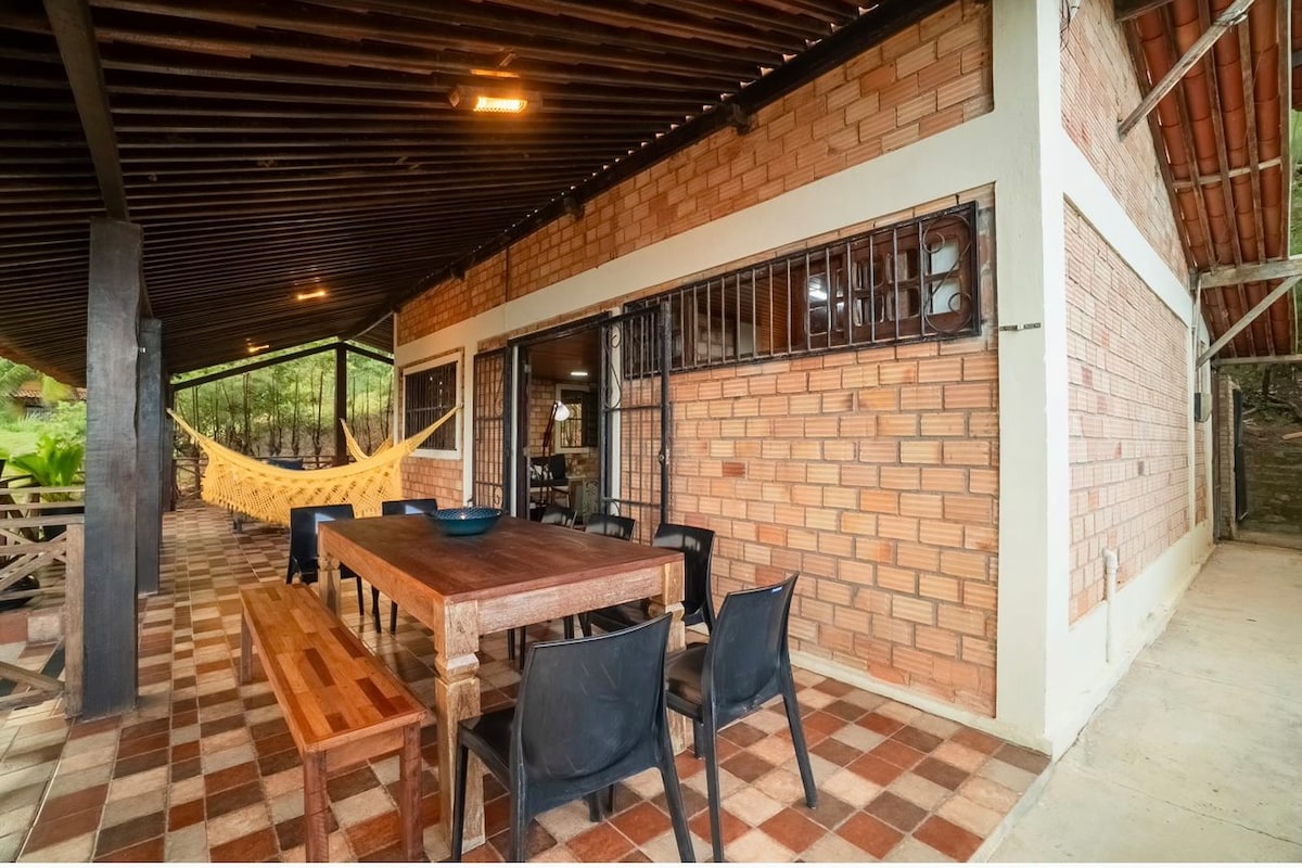 Chalé para casal. Dispomos de utensílios básicos de copa e cozinha, refrigerador, deck para refeições, ar condicionado, banho quente. Na parte externa temos terraço com mesa, cadeiras e rede, jardim, chuveirão cascata, estacionamento e ampla área de circulação. Nosso espaço é tranquilo e privado. Temos duas gatas bem calmas, a Maya e a Lisa.
